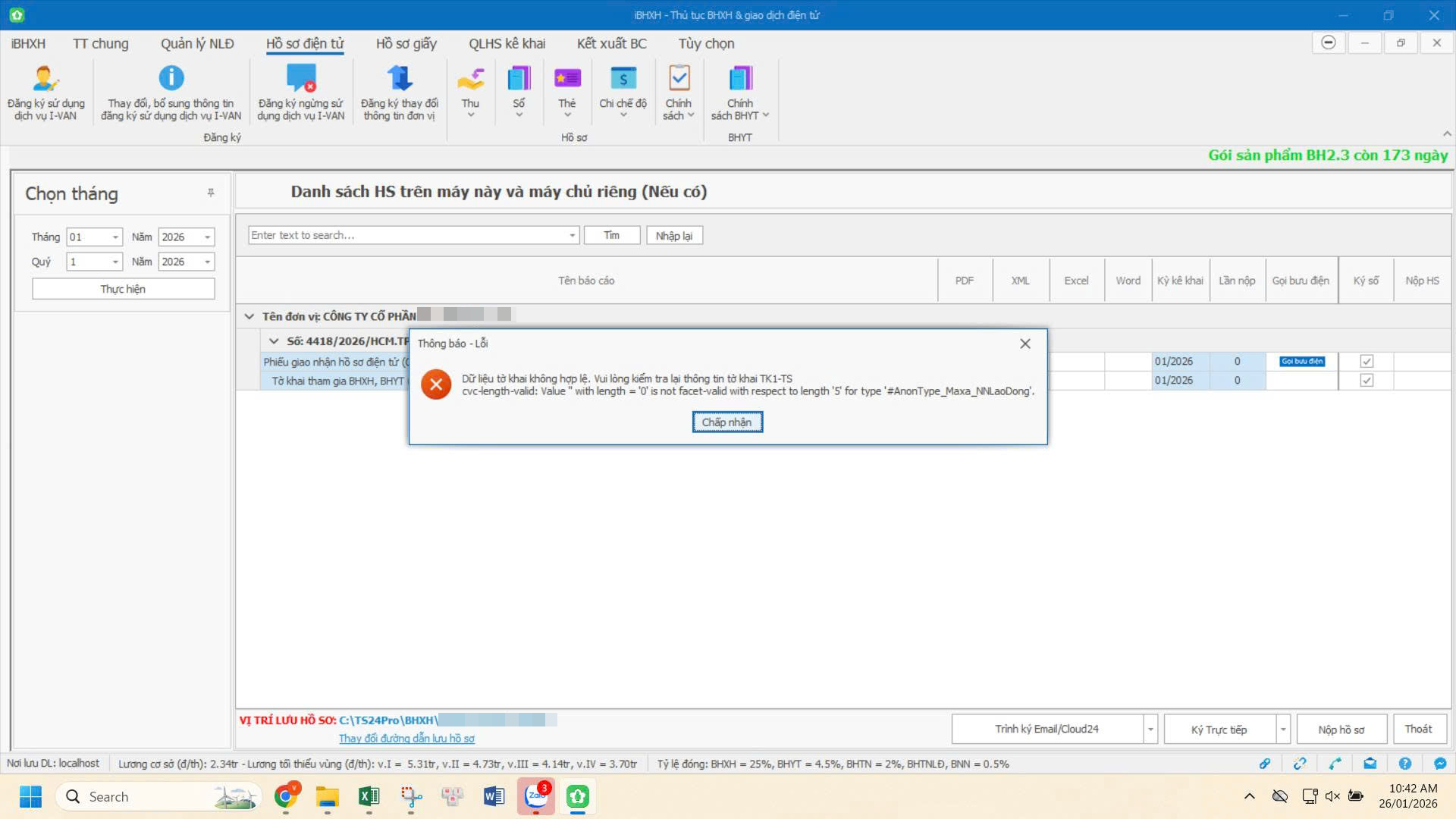 Thông báo này xuất hiện khi ký nộp HS, là do mã xã thay đổi thành 5 số