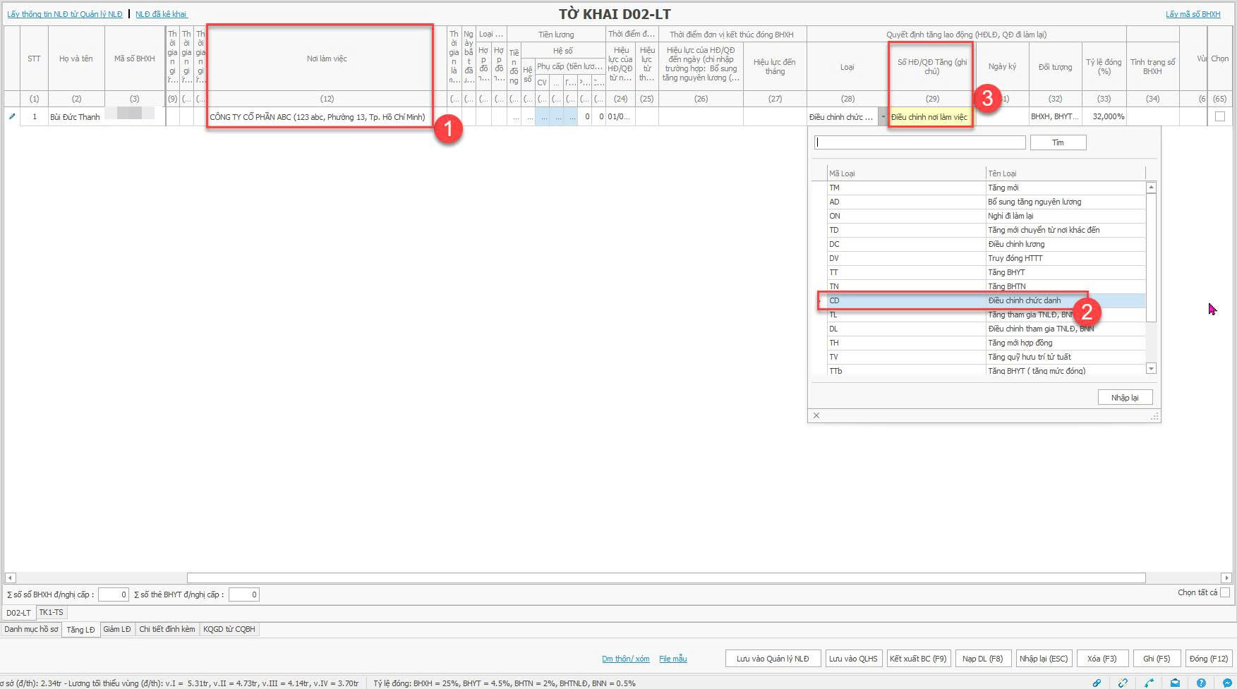 Ghi chú: điều chỉnh nơi làm việc ở cột số 29 (3)